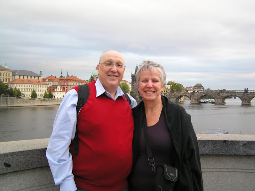 Walked across Charles Bridge, then along the river bank. Had breakfast in a cafe (scrambled eggs, Prague ham, 7 bread rolls, corn flakes in a parfait glass with yoghurt and fresh fruit in another parfait glass.