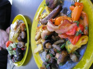 Lunch at the buffet restaurant at KaDeWe, the famous department store in Berlin. We paid for our food by weight. This lot came to about 38 euros! But we were still hungry! Shared one serve of strawberries and cream for 5 Euros