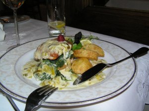 Catfish with leeks, raspberries and potatoes – delicious – at JaDka restaurant