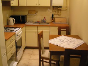 Our apartment in Krakow was quite comfortable. Had a separate kitchen area where we drank leaf tea out of my new Polish teapot!