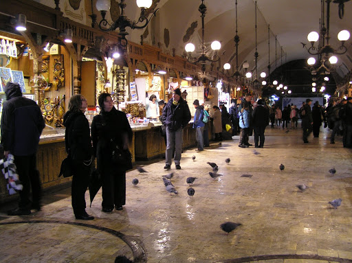 Undercover souvenir market in the Old Town square. The pigeons came in to get dry too!