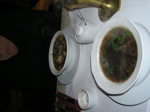 Lunch at another restaurant – typical Polish cuisine – we both started with soup – fish soup and mushroom soup – both delicious – and ended the meal with vodka shot infused with mint!
