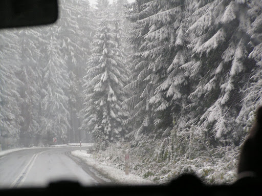 The decision to take a tour to Zakopane and the Tatra mountains was a good one because we got to experience not just a little bit of snow but lots! This is a picture from the minibus.