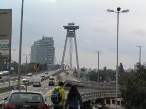Novy Most (new bridge) over the Danube is dominated by the flyer saucer. Apparently you can can go up the tower.