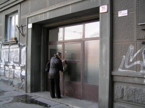 The outside of our apartment building – uninspiring concrete. This is not someone we know.