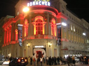Ronacher Theatre where we saw Dance of the Vampire – it was themed with red lights inside and out