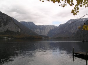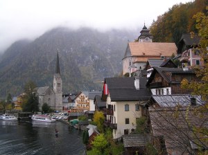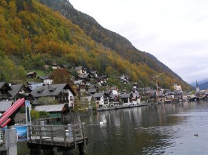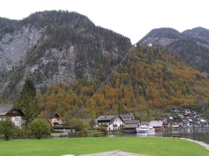 looking up at the funicular and entrance to salt mine at Hallstatt