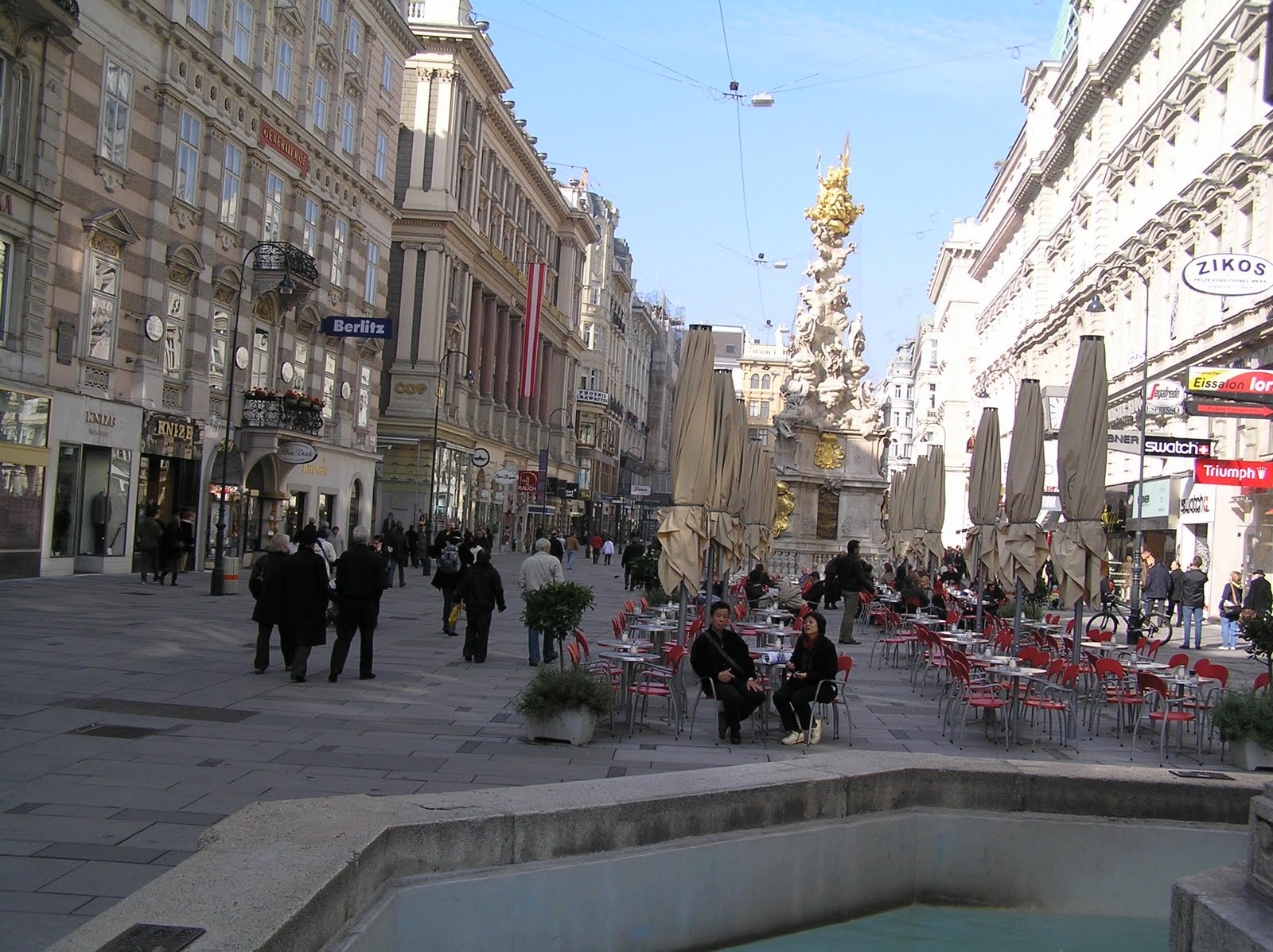 Vienna is such a beautiful city. Apart from museums and galleries, there are also fantastic shopping arcades. Streets radiate out from St Stephen’s Cathedral and at the end of each street there is always a glimpse of another beautiful old building. There has been a lot of work going on around Stephensplatz – renovations to the cathedral, laying paving and today planting established deciduous trees along Margaretstrasse.
