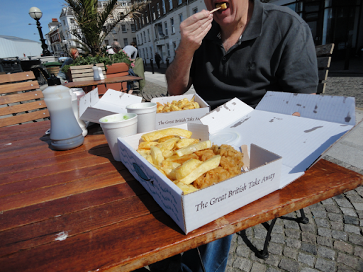 Parked and wandered down towards old town and had fish and chips with mushy peas across the road from the beach – outside in beautiful sunshine in stark contrast to yesterday’s very cool weather.