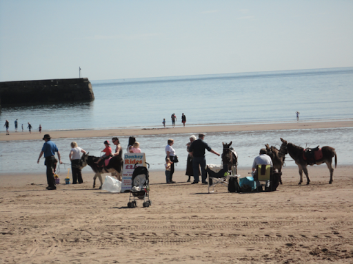 Even more surprising was the beach – down stairs so steep that a funicular was available to go back up – to an expanse of tan-coloured sand with children paddling and donkey rides for £2.50, lined with amusement parks and parlors, all bathed in glorious sunshine. It was like a picture postcard and reminded me of those inexpensive prints you used to be able to buy of the seaside – it was unreal. We bought a small tube of Scarborough rock candy and continued on to the Rotunda museum, a geological museum featuring fossil treasures of the Dinosaur coast. Also on display was Gristhorpe man, a Bronze age sketeton found in an intact wooden coffin in the 1800s.