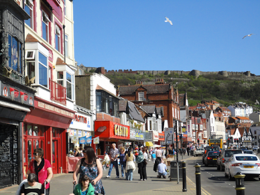 Walked down high street, surprised to see castle ruins framed between Georgian and Edwarian street scapes.