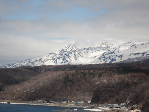 Very cold 5 degrees outside with a lot of snow drifts that haven’t yet melted. Anthony had rugged up with his beanie and scarf so must have been cold! The walk downhill was invigorating but very quiet. We saw some deer by the side of the road and not many shops open at all. The 7 Eleven was quite extensive and had ATM with English. On to the Shiretocko souvenir shop and Utoro world heritage centre. Very interesting centre with hands on displays and life-sized animals. We saw see a movie in English of the Shiretocko world heritage site. Unfortunately we’ve come in between seasons so no tours seem to be operating out of Utoro, either land or sea based. There are brown bears, the deer we have already seen, eagles and owls, killer wales, minke whales, seals, and lots of seabirds. It would certainly be worth coming again in summer.