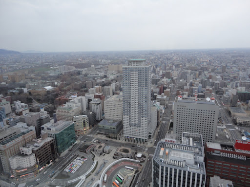Back in Sapporro about 5.00pm we decided to go up the JR Observation Tower – T38. It cost 700 yen each but was well worth it. Sitting on comfy chairs, facing picture windows, with a glass of beer and, we watched the sun go down over Sapporro. It was quite a sophisticated experience in fact with its subdued lighting and soft music.