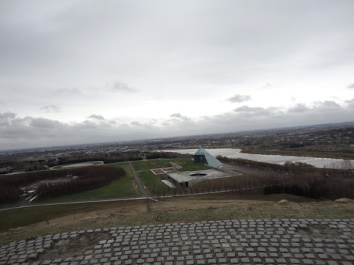 If it really was Monday then all museums would be closed. We were already at Moerenuma Park having bought an all-day excursion ticket for trains an buses at 1000 yen each. Moerenuma Park was designed by the world famous sculptor Isamu Noguchi but he died before his ideas were realized. It’s unique as the 189 ha park was constructed on what was once a site for a waste treatment plant. The park is really a sculpture park with various large sculptures that you can climb or interact with. There is the glass pyramid, Moere beach, Play mountain, Tetra Mound, and Mt Moere which we climbed. It was an inhospitable day – very cold and windy on top of Mt Moere and we unfortunately didn’t see all the sculptures. glass mountain is closed on Mondays and there were very few people around.